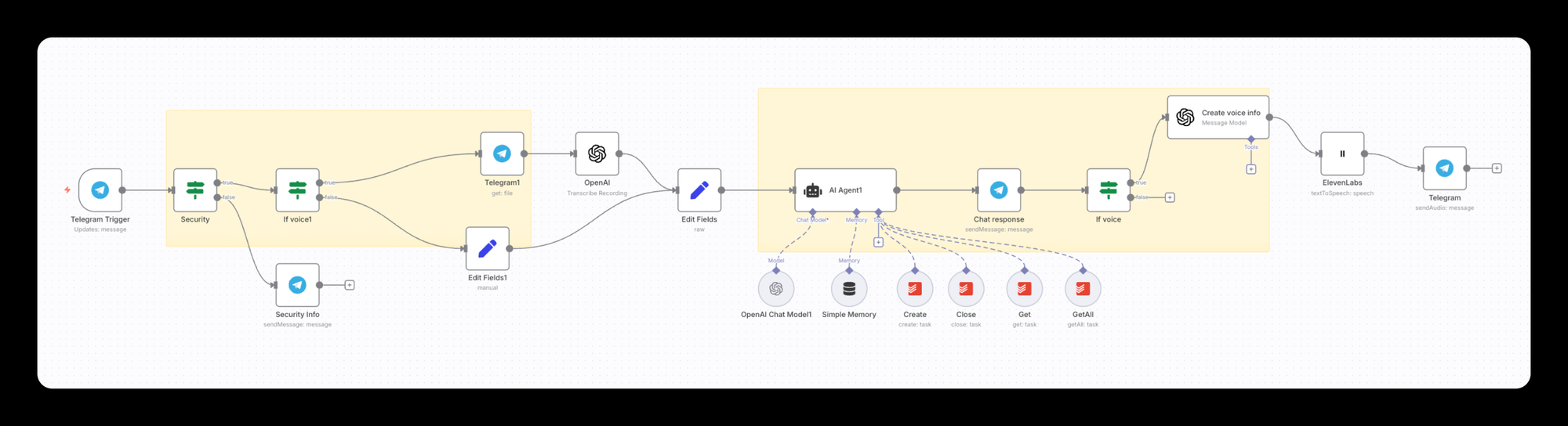 Głosowy agent w telegramie z wieloma MCP